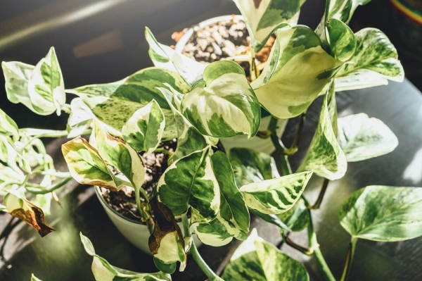 Чтобы сциндапсус в полной мере выполнял свои полезные функции, ему необходим грамотный, но простой уход. Он любит яркий рассеянный свет — под прямыми лучами на листьях появляются ожоги. Это особенно важно для пёстрых сортов наподобие «Неона»: чтобы их полосатая окраска оставалась контрастной, зимой им требуется интенсивное освещение, зачастую с использованием фитоламп.