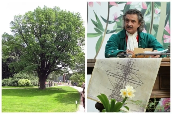 Дуб черешчатый; посажен, вероятно, Георгом Францевичем Гофманом; Спектакль «Петр I» в постановке Владимира Драгунова в Ботаническом саду МГУ «Аптекарский огород» в Москве. Коллаж АиФ