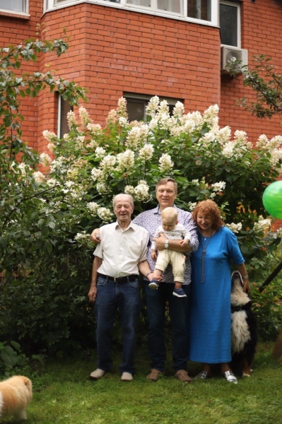 На фото — дедушка Саша, папа Игорь, мама Ира и сын Игорь на руках. Фото: Личный архив