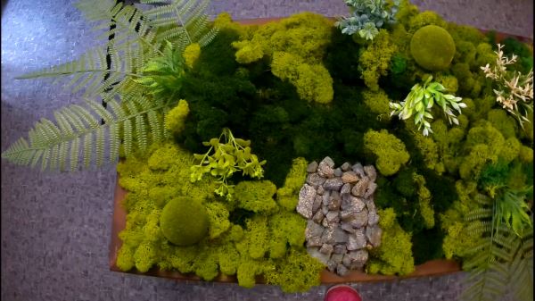 Стабилизированный мох – это натуральный мох, прошедший специальную консервацию для использования в интерьере. Панно или картины из него выглядят как кусочек леса на стене и сразу придают комнате шарм эко-стиля. Такой мох не нуждается в свете и поливе, годами сохраняет мягкость и яркий цвет. Уход минимален: достаточно иногда смахивать с него пыль.