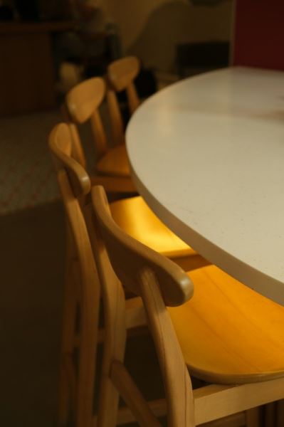 Круглый стол или остров без углов удобнее в проходных зонах. В маленьких квартирах это еще и практично – меньше шансов задеть угол.