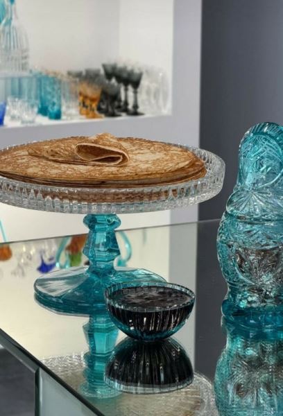 Прозрачное и цветное стекло возвращается в интерьер. Бокалы, графины, вазы из хрусталя добавляют блеск и легкость.