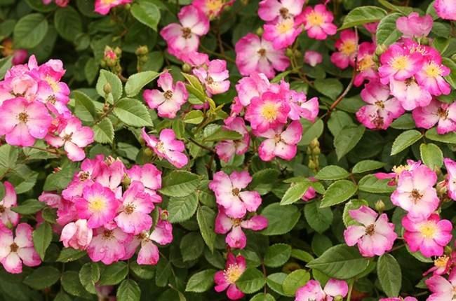 Если ‘Rainbow’ вас не привлекает, попробуйте другой куст из этой серии repeat bloomers: розу ‘Blushing’ Knock Out rose. Этот тип розового куста украшен ароматными полумахровыми розовыми цветами и в зрелом возрасте достигает 1,2 м в высоту и ширину. Как и в случае с ‘Rainbow’, не требуется обрезки.
