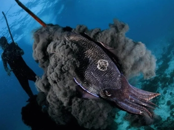 Когда головоногие моллюски чувствуют угрозу, они моментально выпускают чернильное облако. Этот защитный механизм не только отпугивает хищников, но и лишает их ориентации, позволяя моллюскам быстро скрыться в безопасном месте. Чернила вырабатываются в особом органе — видоизменённом отростке прямой кишки. Их состав удивительно прост: меланин (идентичный пигменту, отвечающему за окраску человеческих волос, глаз и кожи) и слизистая органическая субстанция.
