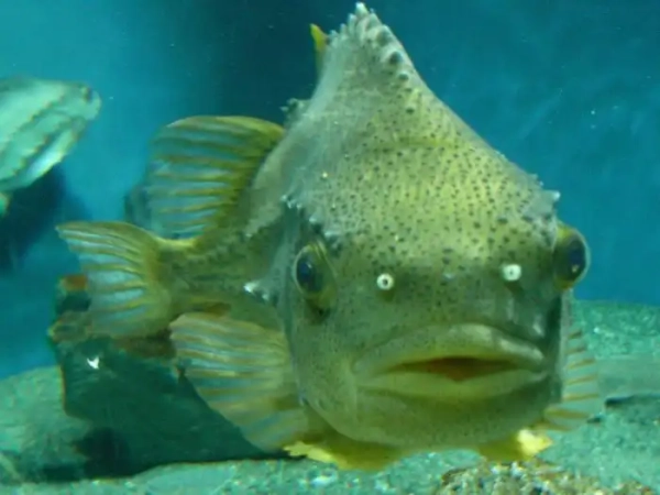 Спутать нашу гостью с другими представителями морской фауны сложно, так как внешность рыбы-воробья весьма необычна. Круглое тело, будто распухшее после знатной попойки, покрыто жёсткими шипами-наростами.