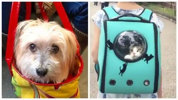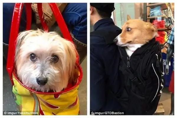 Эти мощные лапищи предназначены не для ходьбы! Сегодня часто можно увидеть, как домашних животных носят в сумках и рюкзаках, чтобы дитятко не испачкалось. И чтобы можно было спокойно перемещаться с ним в общественном транспорте, например. Но выглядит это забавно, не правда ли?